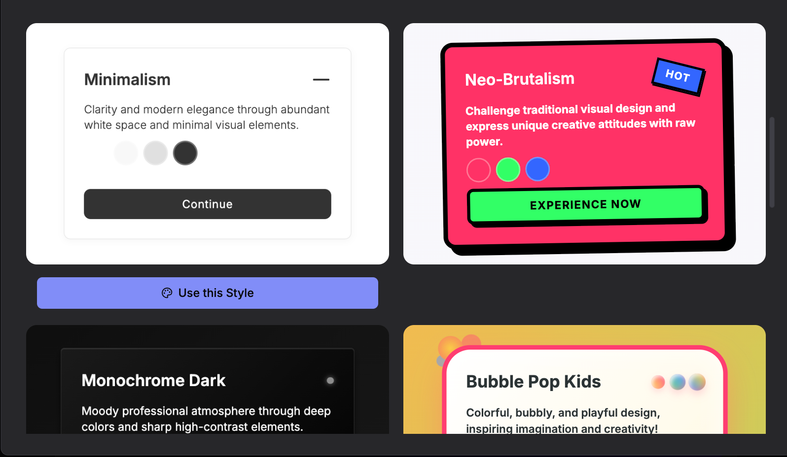 看了下几个示例网站,感觉审美不是太好,一眼 AI ,可能是最近 AI 网站看太多了。不过一键集成数据库、支付、登录这种上挺方便的。