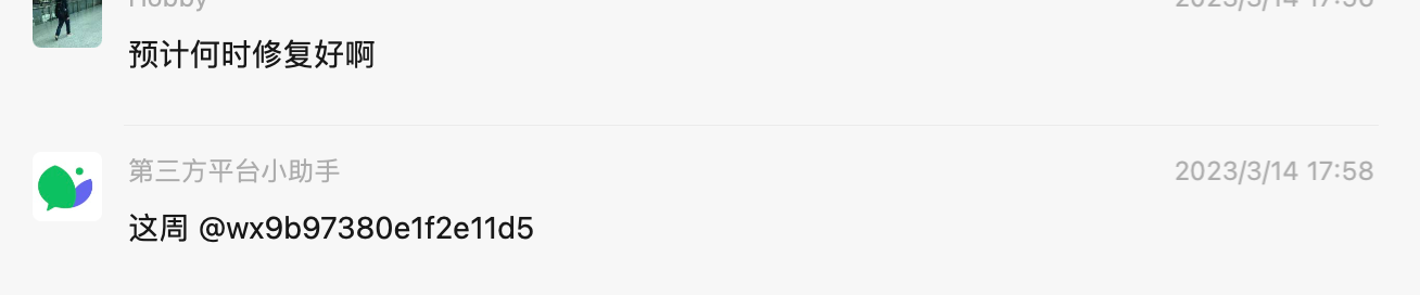 又等了一周,3 月 14 日终于在问题反馈群收到,客服人员答复 承诺当周修复 。